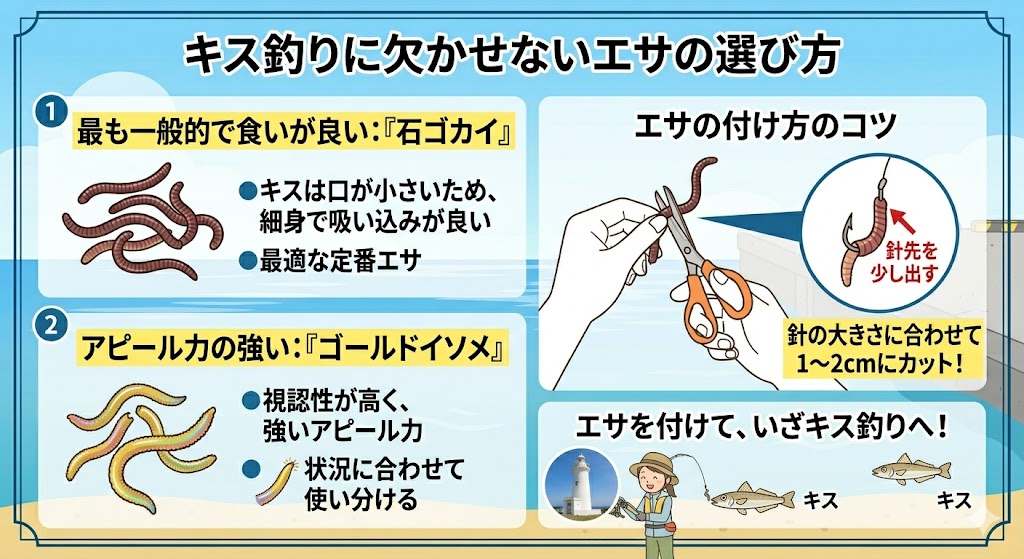 キス釣りに欠かせないエサの選び方