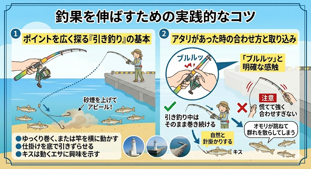 ただ投げて待つよりも、少し工夫を加えるだけでキスの釣果は劇的に変わります。